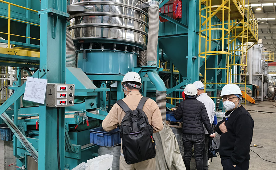 在公司技術與銷售團隊的陪同下,客戶們先后走進生產車間,實地參觀了鋰電池回收處理生產線的全流程。從原料破碎、分選到后續的資源化處理,每一套設備都以穩定的運行狀態、高效的處理效率,直觀展現了瑞賽克在鋰電回收領域的技術實力。客戶們認真聆聽技術人員對設備原理、工藝流程、環保標準的詳細講解,仔細查看設備結構與運行細節,不時就產能、能耗、回收率、運維成本等核心問題進行深入交流,對設備的智能化設計、高回收率優勢以及全流程環保處理方案給予高度認可。